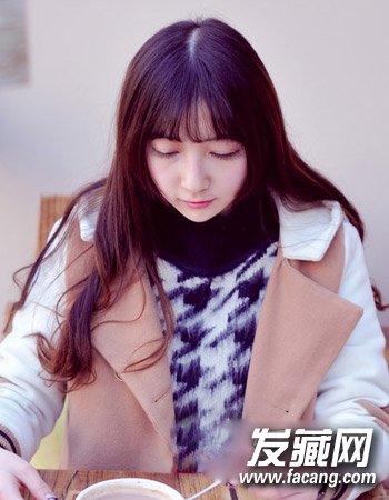 甜美的空气刘海加上柔顺的长卷发打造出别致的时尚气质来,精致的鹅蛋脸显露出个性与时尚的一面来,造型简单而且大方。