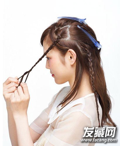 step1:从前额取出一束头发编成精致的小辫子。