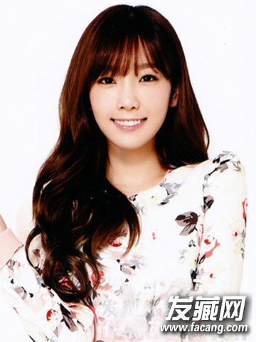 适合淑女路线的妹纸打造的一款韩式齐刘海卷发发型,烫卷发丝莹亮柔顺,披肩发配合齐刘海更显清纯气质。