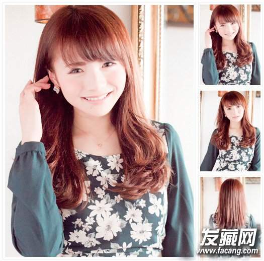 发型点评:前额的刘海打薄后空气感十足,略带卷翘的效果遮盖额头修饰脸部轮廓。棕红色长卷发在发尾烫出丰盈卷度,甜美可人。