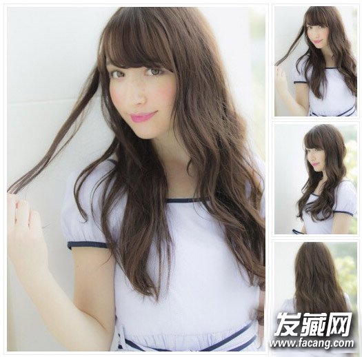 发型点评:这款栗色长卷发推荐给长脸MM们,轻盈的长刘海沿着眉毛摆动出卷翘的弧度,慵懒的栗色卷发打造出完美女神气场。