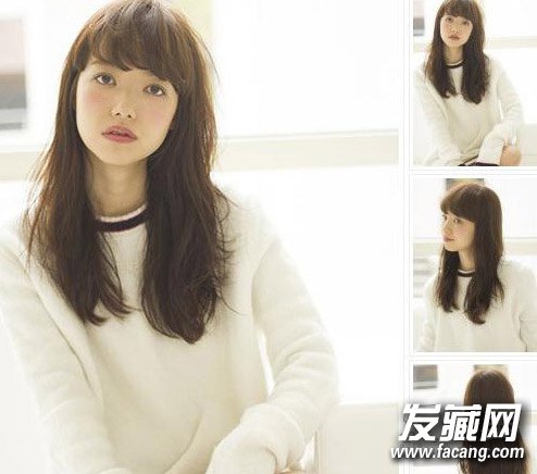 发型点评:栗色卷发轻松柔软,随意的摆动在肩头散发出慵懒迷人气息。别致的刘海层层内扣,在刘海的修饰下脸蛋更加妩媚。