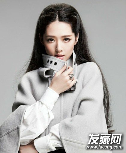 中分长刘海分出清晰的纹理后用发夹整齐的固定在头顶,露出光洁的脸蛋,搭配一件呢子大衣,大气摩登。