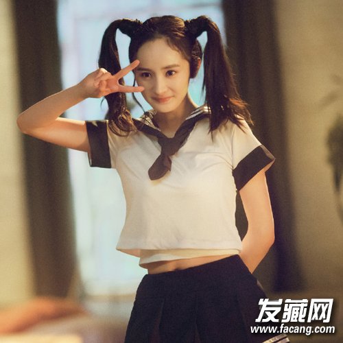扎个马尾辫,配上杨幂的萝莉脸也还是很萌很嫩的。适当的露出脖子可以更好的展现女生气质。