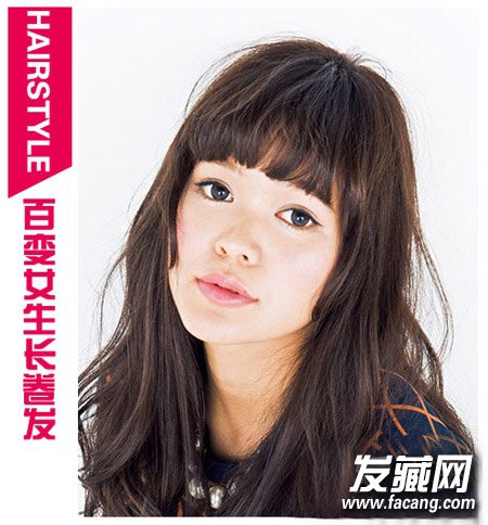 发型点评:齐刘海遮盖住整个额头衬托出迷人的双眼,达到完美减龄效果。长卷发沿着脸颊内扣,慵懒的效果展现出少女般的清新迷人。