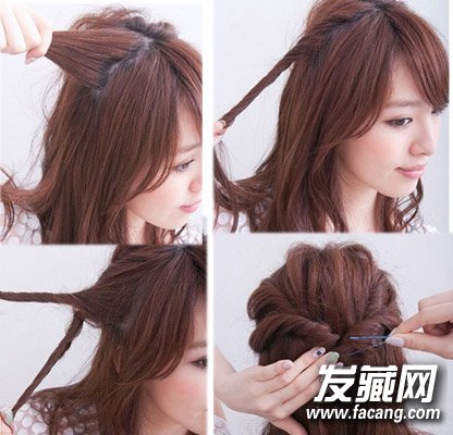Step 4 另一侧同样旋转发束,将发束固定在脑后。