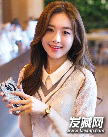 长长的卷发随意的披散下来,营造出唯美的浪漫气息,偏分的刘海设计也简单的修饰了脸型,打造出淑女般的气质来。
