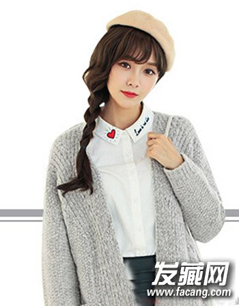将长发编织成简单的侧马尾辫,简单好看,显得颇有甜美气质,斜刘海的设计也修饰了脸型,看起来清新亮丽。