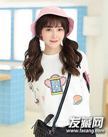 减龄的双马尾扎发,简单随性,凸显出mm甜美可爱的样子,轻盈的齐刘海也显得颇有萌范,非常适合可爱型的女生。