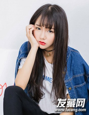 当然简单的长发直发发型也能拗出各种不同的造型来,这一款甜美的空气刘海发型,半透明的设计增加了造型的时尚感来。