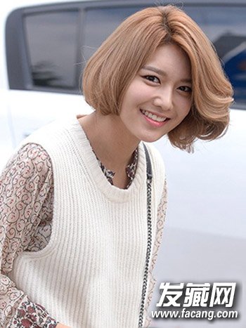 适合知性OL的一款时尚短发造型,三七分的短卷发烫发加染浅棕色的染发色显肤白,很有甜美知性气质。