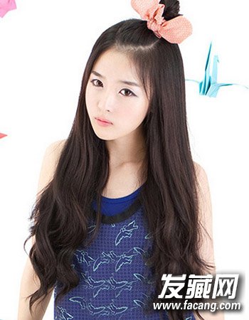 时尚的长卷发发型,可爱的小小丸子头搭配起来显露出别致的时尚感来,而且柔顺的长卷发时尚大气,可爱十分。
