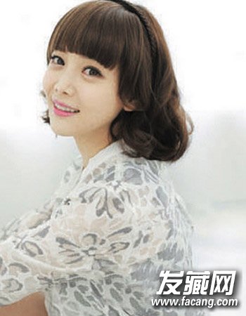 很甜美的一款韩式中短发烫发发,甜美的齐平刘海与波浪感烫发的设计打造出个性与时尚的一面来,整个造型优雅且时尚。