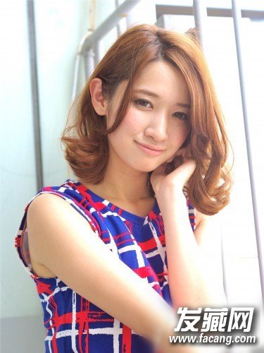 中分刘海尽显气质之余更完美瘦脸,发尾打造出来的卷翘弧度清新可爱,搭配棕色发色,摇身一变成了人见人爱的妹子。