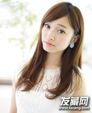 把薄刘海比较随意地做一个偏分,看起来可以有种甜甜的小清新,披在两肩上的秀发比较顺直,再给发尾做一个简单的处理,不要随意得让它披着,可以让发量看起来多一点哦,特别适合发量比较少的女生。