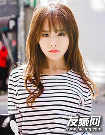 简单的利用的是清新灵动感的空气感刘海造型设计来增添女生的甜美可爱风,而时尚的栗色染发颜色玮微烫形式长发更添十足的甜美可爱学院风。