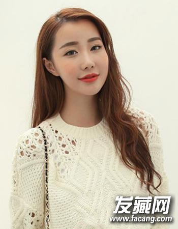 再利用提一九分的露额造型,而搭配深棕色的染发颜色来增添时尚感,与微烫形式的长发相搭,同样很显温柔淑女风。