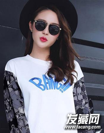 简单的利用的是清爽的露额造型设计,再搭配清新自然的发色与微烫形式的中长发发梢烫发,一副简单的墨镜更添潮流街拍范儿。
