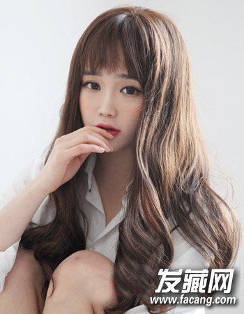 不同的造型不同的时尚,一款蓬松的长卷发形成别致的气质来,搭配上可爱的齐刘海不仅时尚而且修颜显瘦。