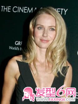 捕捉到出席电影试映会的娜欧蜜华兹(Naomi Watts)。她一袭吸引目光的大胆深V洋装,没有使用任何配件搭配的健美打扮,如果此造型将头发盘起则会变得有点太性感的样子,所以放下头发毫无压力的轻松感则是娜欧蜜的风格。为了避免显露太过休闲的ㄈ格,以卷发展现淑女气质可说是正确选择。柔顺内弯的卷发让发型不容易散乱,就是让她看起来保有美丽与气质的秘诀。