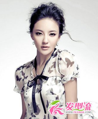 把微卷的头发全部盘起来,刘海制造出蓬松立体感,露出完美的额头,让五官变得更加立体清晰。高耸的刘海拉长了整体比例,营造出高挑的气息。发丝略为凌乱,散发出随性飘逸感。