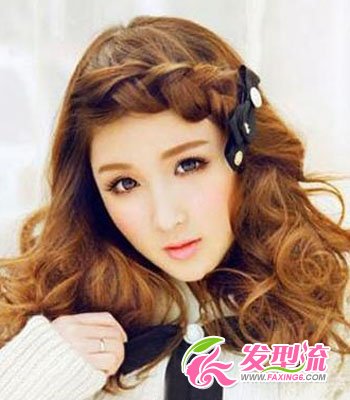 这款时尚卷发发型图片,给人焕然一新的感觉,非常与众不同。长长的刘海采用编发的形式,是这款发型的亮点,洋溢着时尚年轻的气息。再搭配个发饰,更为整个发型加分,绝对抢眼。