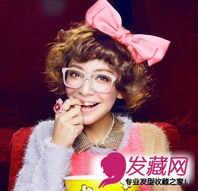 可爱的短卷发的俏皮无比,刘海采用内卷的处理,而发尾的卷度刚好在颧骨的位置,很巧妙的修饰了脸型,配上蝴蝶结发饰和白色的镜框,让女生立马减去好多岁!