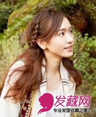 这款编发打造的卷发发型绝对能让你与众不同,赚足眼球!从顶部开始逐层往后脑编发,然后在耳朵后面固定,展露出迷人的双颊,非常清爽。