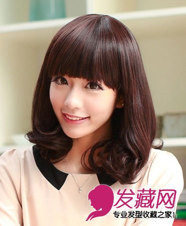 小编点评:中等的发长,在发尾部分烫成微卷,让整体造型营造自然的蓬松感,加上乖巧的齐刘海,迅速提升甜美度哦~想要尝试甜美感觉的MM一定不能错过哦!