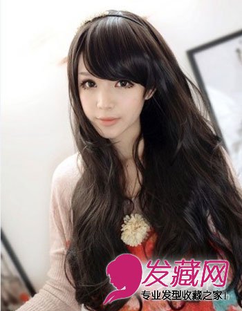 小编点评:柔滑弧度的刘海,微微的露出一点额头,显的不那么死板,长长的卷发很好的拉长了脸型,刘海也是修饰脸型的必要关键,瞬间大脸就变成小脸了