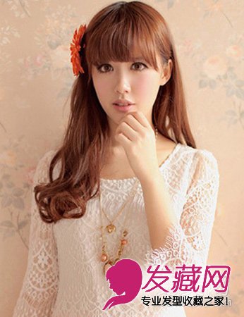 小编点评:微微内扣的刘海显得额头更加饱满好看,披肩的长发在发尾烫上大卷给人感觉非常甜美可爱,将两侧的头发掖至耳后,十分清爽开朗。