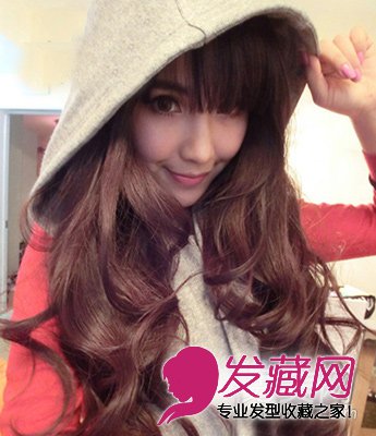 浪漫优雅的披肩长卷发,加休闲卫衣帽子搭配,精灵甜美又不失活力休闲风。