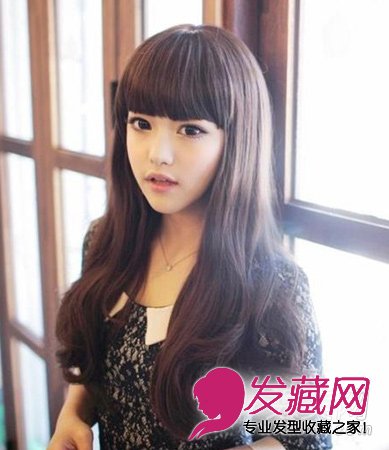 一款很可爱的齐刘海长卷发,尽显韩国女生的甜美可爱,齐刘海非常的减龄哦