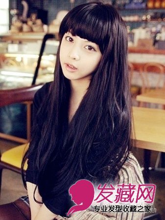 齐刘海中长发修颜瘦脸的效果是不容人小觑的,这款刘海发型可以将圆脸、长脸、方形脸修饰的小巧可爱。