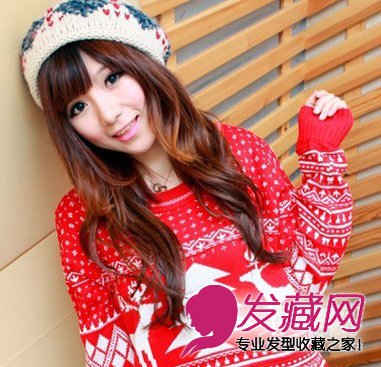 修剪得很有的层次的长发显得非常清爽飘逸,厚厚的斜分刘海配上大眼妆非常吸人眼球,戴上简单的毛线帽,显得更加清纯可爱