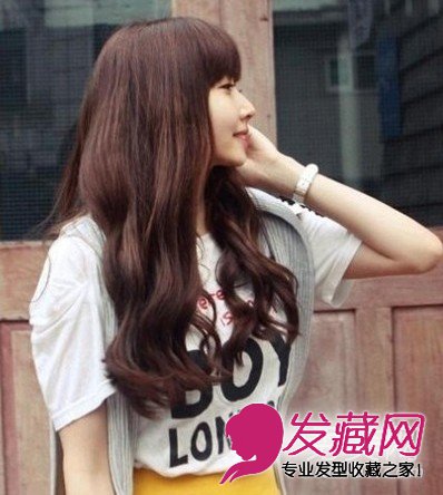 栗色的发色衬得皮肤更加粉嫩白皙,修剪得非常整齐的发尾显得更加干净利落,再烫上随意的大卷,充满了学院女生清新淡雅的甜美气息。