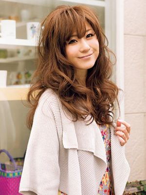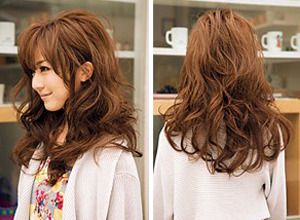 正面:这款发型利用卷度创造出蓬松的卷度,浪漫的卷发充满空气感,增加发型的亲近感。刘海 可以有效地达到小脸的效果。