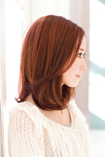 染上最近很火的驼色,增添时尚感。只在发尾处用大波浪卷一个卷的弧度,前部分的发尾方向朝前,后部分的发尾朝外,使发型不会显得笨重和死板。粉红驼色提高肌肤的粉嫩度,而又显得恬静乖巧,如同刚刚在图书馆巧遇的同班同学。
