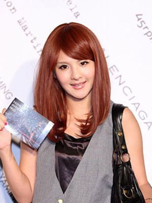 发尾内卷的自然效果恰到好处,再加上斜分的刘海 ,显得脸型更加美丽,红棕色的发色让整体气质更加提升,为baby face的郭静添加了成熟的魅力,很适合轻熟女。