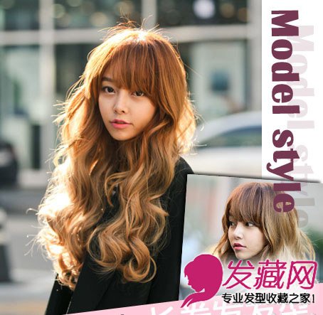 这款发型用在发量多的女生身上会显得更蓬松柔软更可爱,侧分斜刘海十分自然,刚好接合长发的波浪卷烫。头部的浅棕色然渐变至长卷发的米棕发色,潮味十足、很有个性。