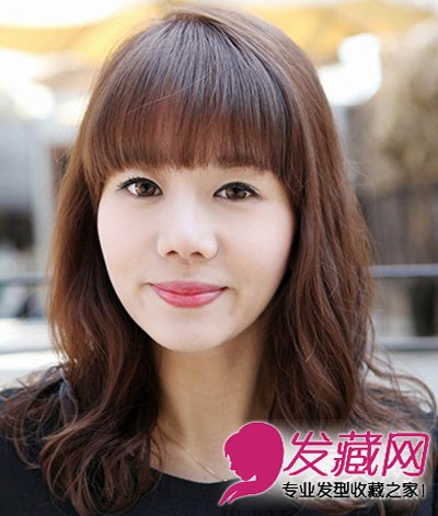 国字脸的女生看上去脸型过于硬朗,配上齐刘海之后,多一份可爱柔美气息,自然齐肩卷发,简约大方不失轻熟女的优雅魅力。