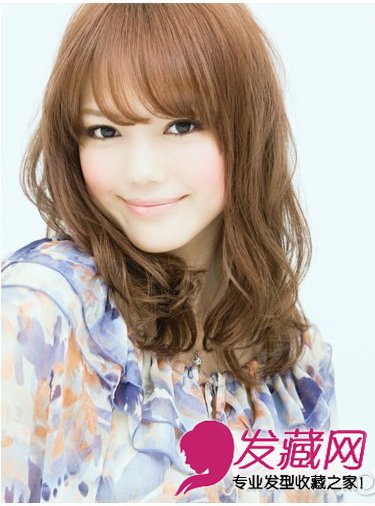 碎发的齐刘海搭配上简单的蓬松卷发造型,自然的感觉最清新。而棕色的染发将蓬松的感觉缓和一些,变得自然。