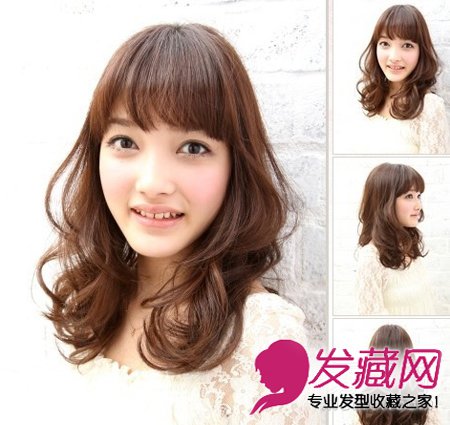 齐刘海将脸型修饰出来,也塑造出甜美的感觉。搭配上不规则的蓬松空气感卷发,增加美感。
