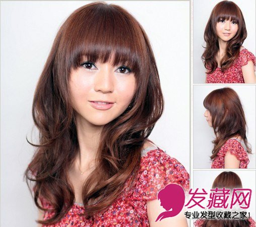 贴合脸型的齐刘海搭配上波浪卷的发型造型,显得更加甜美和减龄,然而轻微的蓬松感能够遮盖多余肉肉。