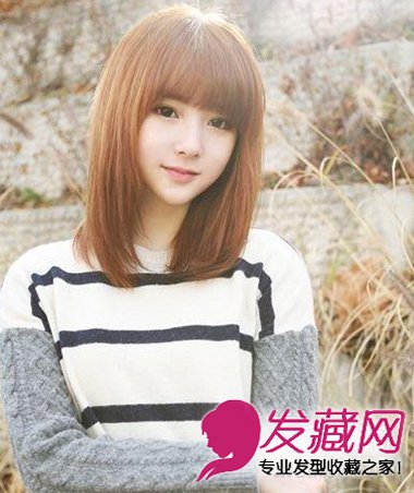 一款简单大方的齐刘海中长发卷发,透出的是女生的优雅气质,浅色的棕色给发丝注入新的元素增添几分甜蜜感,略微卷曲的发部位蓬松兼具动感,是一款适合国字脸脸型的女生发型哦!