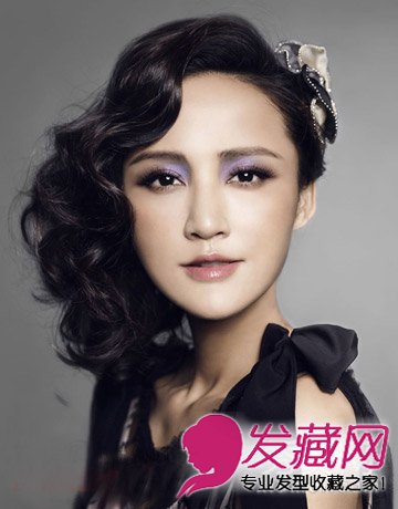 斜刘海搭配大波浪卷发,这款复古发型,非常的衬托女生的高贵气质,头发的一侧再带上一个漂亮的发饰,高贵又不失大气,是宴会的首选发型哦