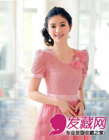 这款韩式盘发造型充满了浓浓的女人味,长发侧扎,盘成一个花苞头形状,前面的刘海也都扎起来,简单大方,搭配时尚的连衣裙,相信这样的造型回头率肯定飙升,甜美又优雅。