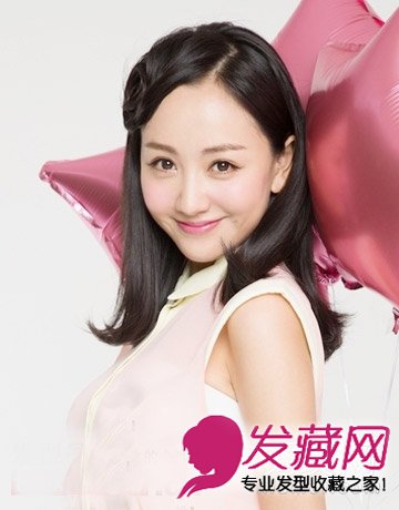 简单的中长发发型,微卷的清新发丝,自然偏分打造巴掌脸型,在刘海部位编个发髻,精致甜美超级显嫩。