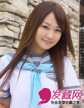 清纯系的长直发,配合斜刘海的角度绝对是圆脸型妹纸的致胜法宝,层次修剪的柔顺发丝,清新宜人,校服装扮,校园学生妹俏丽难挡。