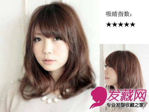 棕色头发让皮肤更显白皙,微卷发增加甜美气息。